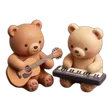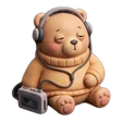 16 clay bears deep in the lofi zone — headphones on, coffee going cold, notebook open, beats running.