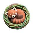 16 clay red pandas in full springtime nap mode — yawning, wrapped in blankets, dozing under cherry blossoms.